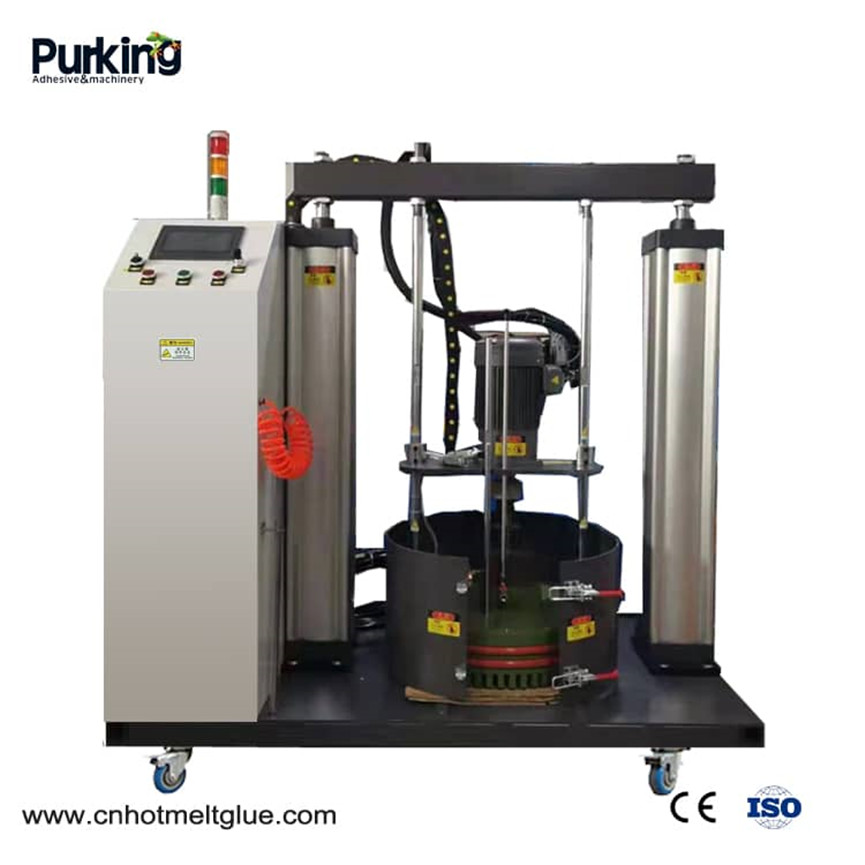 Mūsų 55 gal PUR biri lydymo mašina laipsniškai kaitina ir lydosi: kaitinimo plokštė yra virš klijų. Kaitinant šildymo plokštelę, tik viršutinis klijų statinės sluoksnis susisiekia su šildymo plokšte ir pasiekia lydymosi tašką ir ištirpsta. Apatinė akinių statinės dalis šiuo metu netirpsta. Kad atitiktų mūsų poreikį lydytis tiek, kiek mums reikia gamyboje, guminių statinių klijai turi ilgą tarnavimo laiką: puodų naudojimo laikas gali būti iki 16 valandų 150 ° C temperatūroje ir 3 dienos 90 ° C temperatūroje. Per pastaruosius metus įmonės produktai buvo gerai įvertinti klientų.